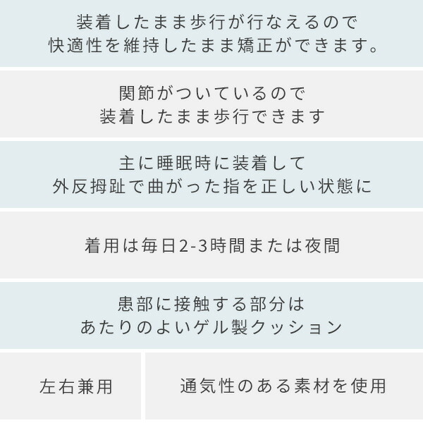 外反母趾 歩き方 矯正-外反母趾は悪い歩き方を続けることで、横アーチ筋が退化して引き起こ された障害です。 ですから、男性や小中学生などハイヒールに無縁な方が外反母趾になっ て しまったり、外反母趾対策の靴を履き続けているのに、症状が改善する ど こ ろか 悪化してしまったりする方が大勢います。外反母趾などの足の変形の進行予防効果。 ② 痛みやシビレ、胼胝形成など、アーチの潰れが原因となる症状の改善効果。 ③ 歩き易く、疲れ難くなるといった歩容の改善効果。 ④ 外反母趾の角度やアーチの矯正効果。