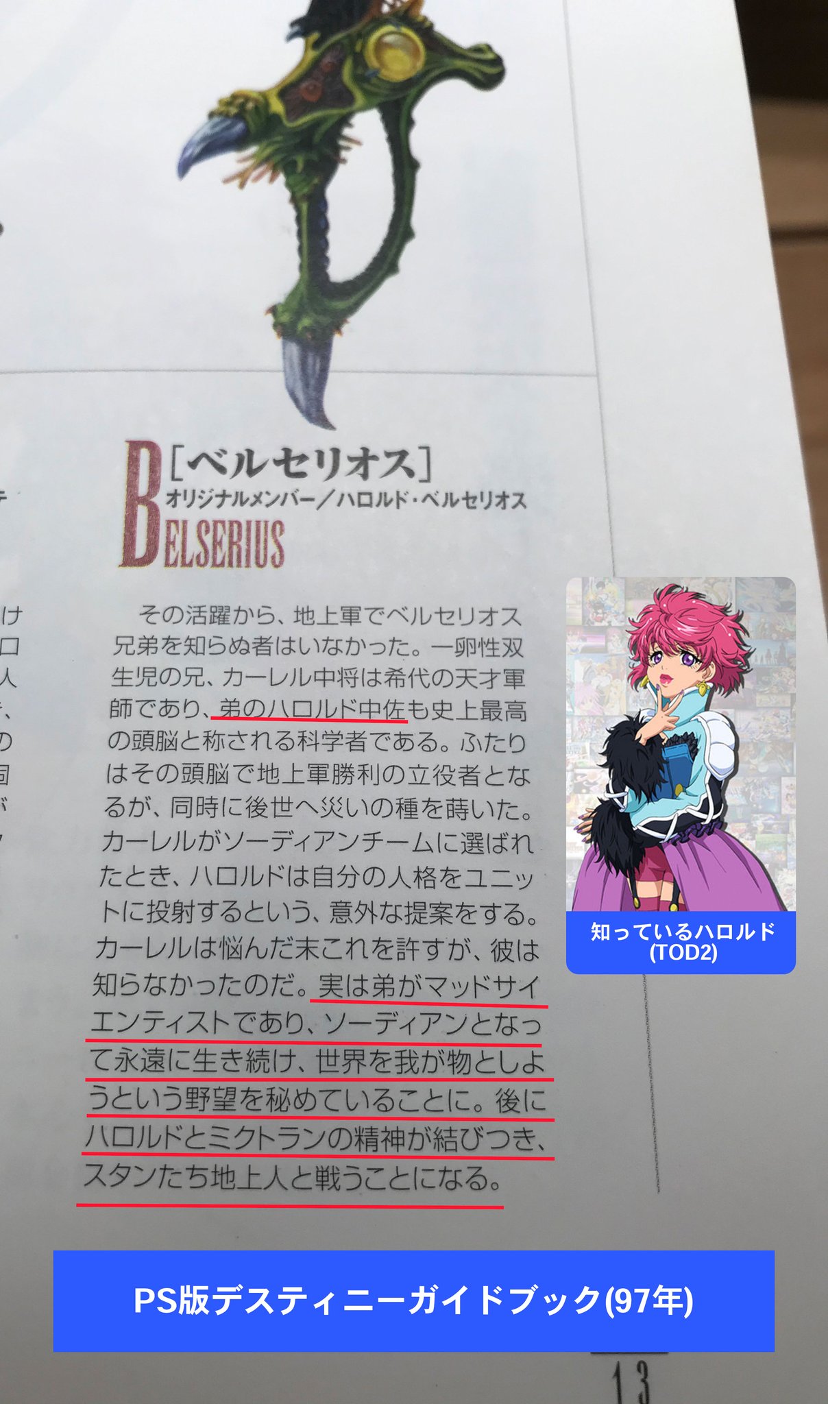 れたす Bo勢 در توییتر いまさらながらtodの攻略本買ってベルセリオスの設定を知ったんだけど Ps版とps2のリメイク版で設定が食い違っていて D2でハロルドの事知ってたから え あいつ男だったっけ 記憶違いかなってなったんだけど なるほど上手い設定を考えるもんだ